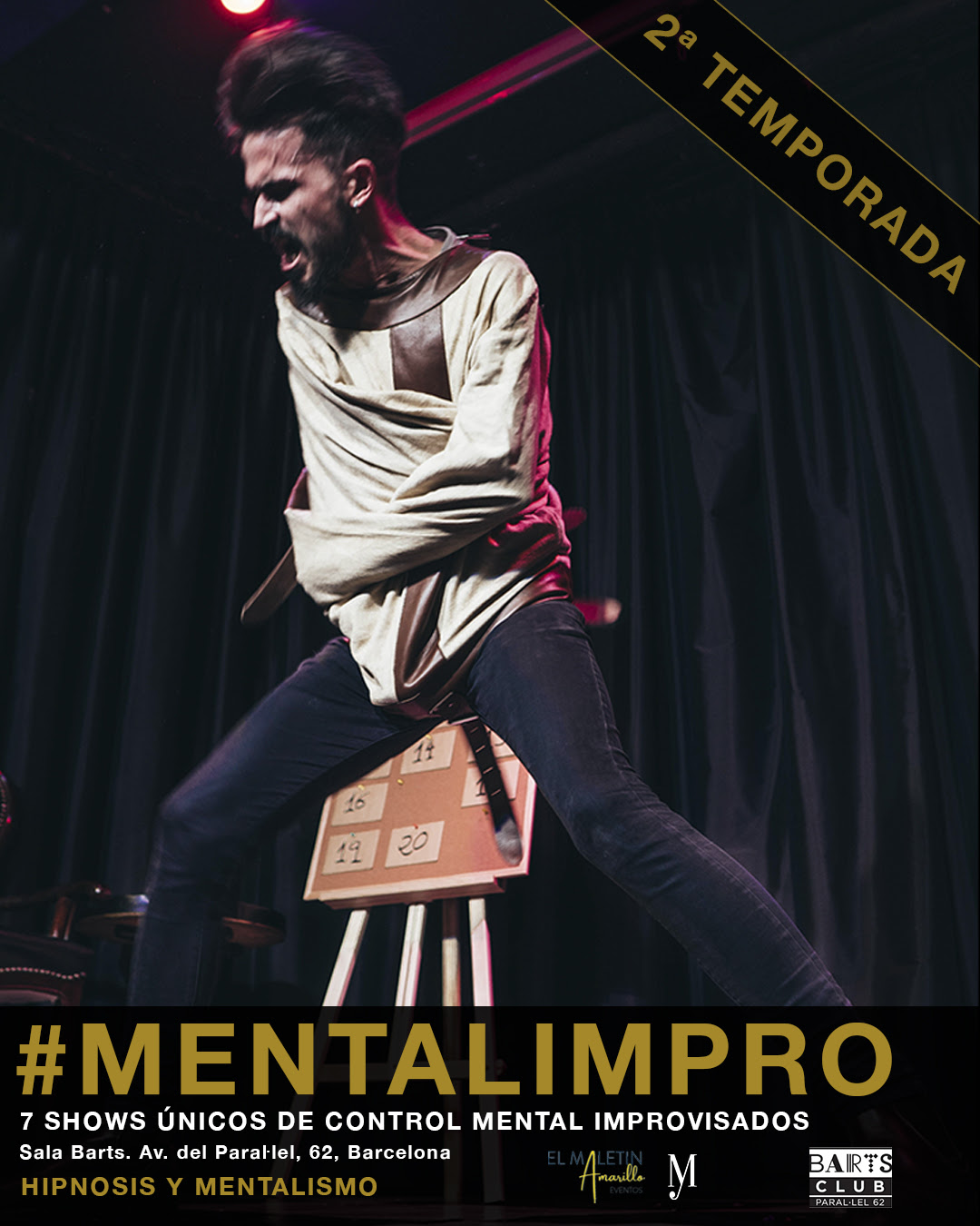 El pasado sábado 9 de marzo se hizo la primera previa del espectáculo que podrà verse en SEIS UNICAS FUNCIONES MÁS. en el escenario del Barts Club podrá verse #MENTALIMPRO, un espectáculo de Adolfo Masyebra que pretende revolucionar el mundo de la hipnosis y el mentalismo con un show dirigido EXCLUSIVAMENTE por el público.
